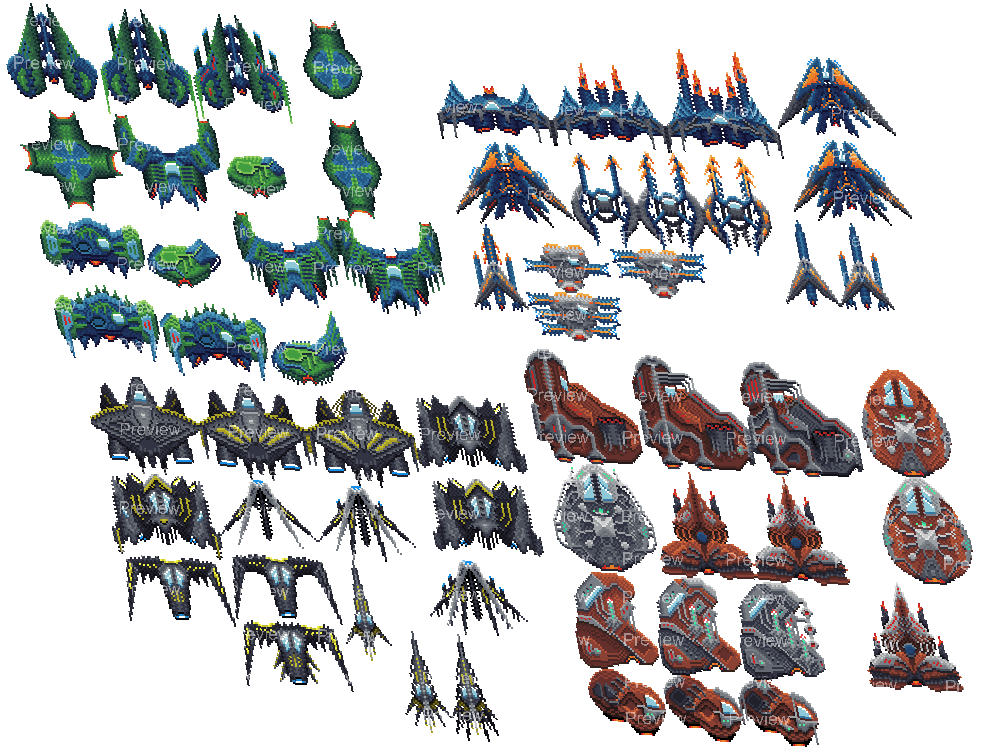 - Modular Weapon Sprites. Some ships include standalone weapon parts — perfect for animated turrets or rotating weapons.